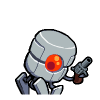 Robot is fairly standard in loop as their ultras are not particularly game breaking, just serving as another beneficial boost. For this reason they're considered more of a vanilla character, as their passive stops benefiting the run any further and their active's usefulness diminishes a bit. Ammo and health are much more common, and trying to eat weapons on the fly can be very dangerous with many more enemies. Another issue of trying to quickly eat weapons is misinputs, Robot could accidentally eat one of their main weapons.