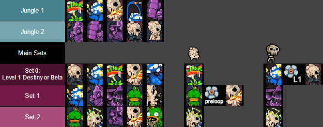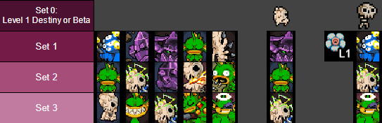 • Example: The start of the routes for both Melting and Skeleton. Once Skeleton enters the Jungle on L1 he sees Set 1 first, and will see through Set 9 normally for nine full mutations.