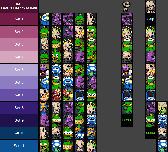 • Route 2: Skeleton's normal route that skips the beta Destiny set, but rather sees Sets 0-8.