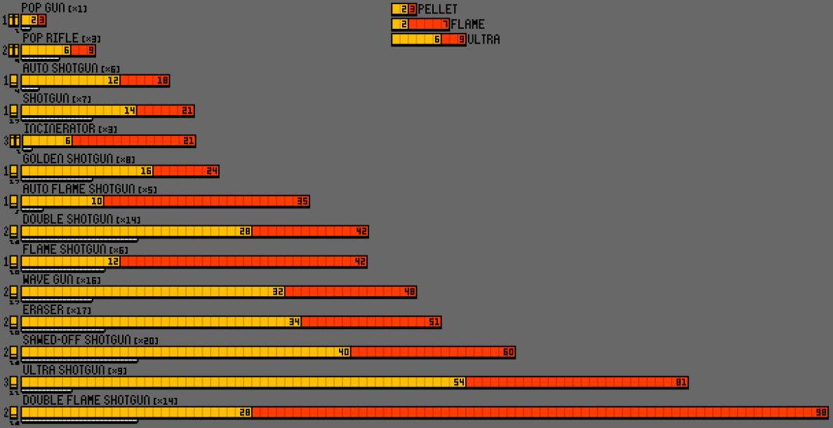 Pop Bullet weapons are listed in the shells section below as they use shell-type projectiles despite using bullet-type ammo.
